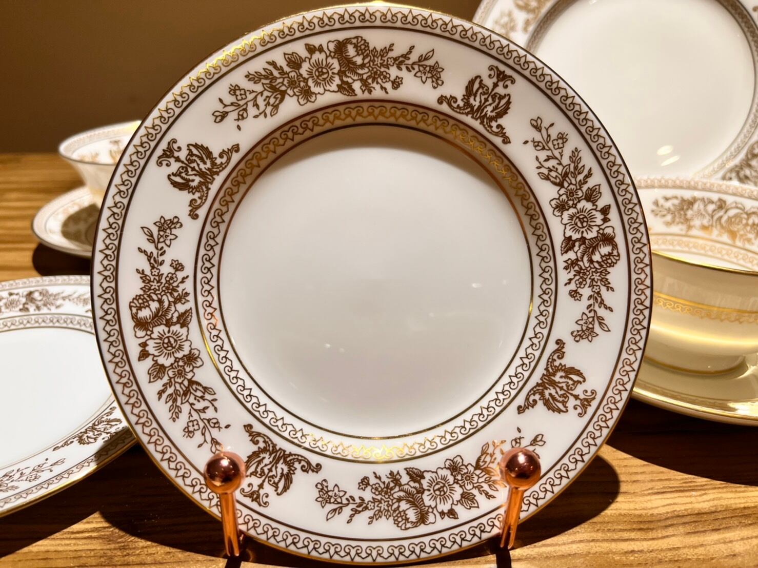 イギリスの名窯ウェッジウッドより復刻版もあるほど大人気なコロンビアゴールドの1970年頃制作されたオリジナルのケーキ皿が到着しました。