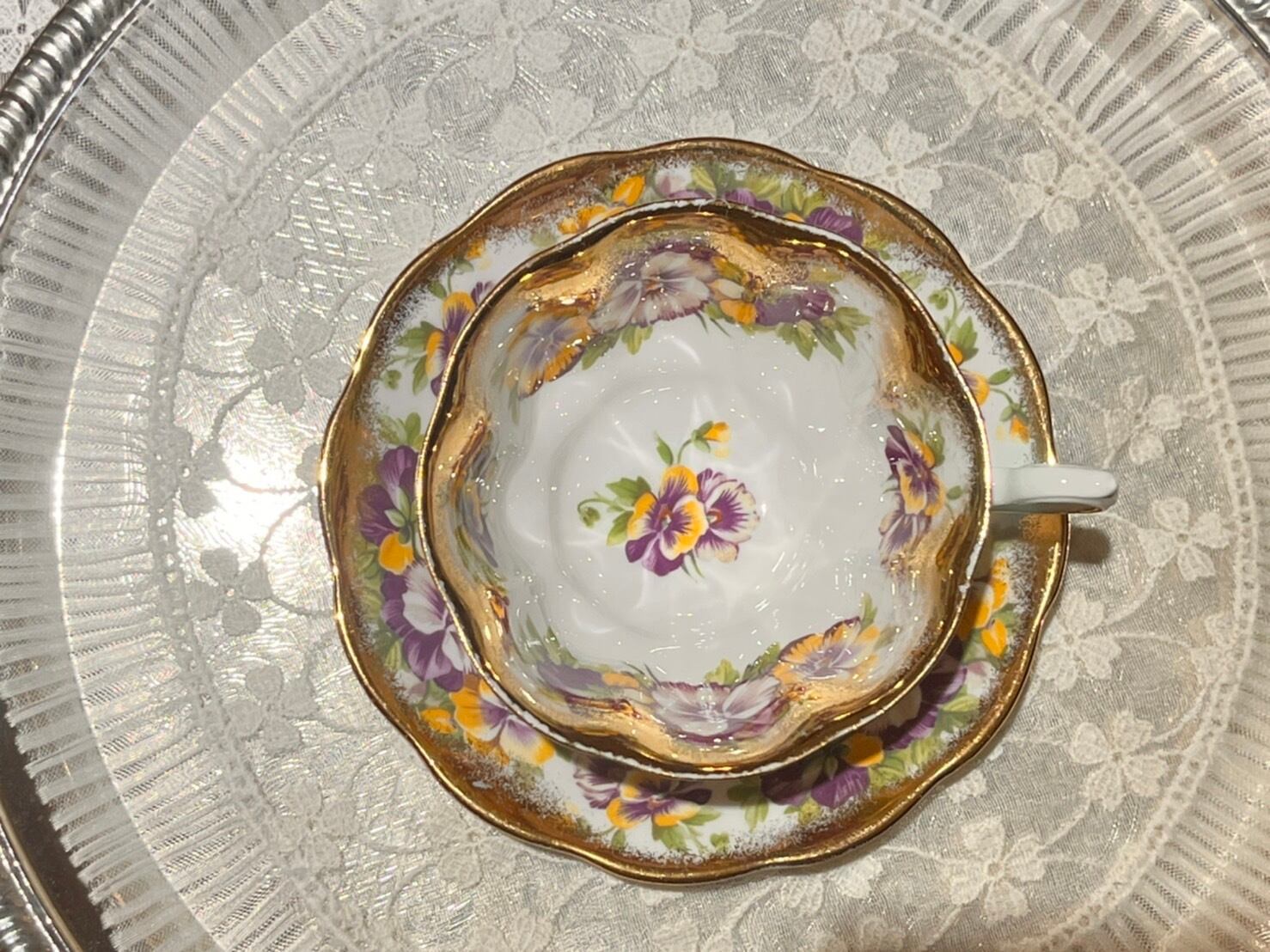 ロイヤルアルバートの金彩が豪華なパンジー柄のカップ&ソーサーが英国より到着しました☆