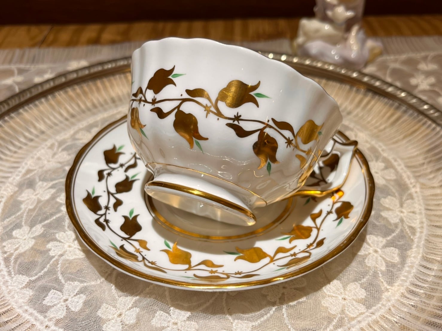ロイヤルチェルシーの金のバラ柄のカップ&ソーサーが英国より到着しました☆