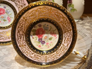 カップとソーサーのバックグラウンドカラーにはコバルトブルー、ピンク、そして白となっておりそのコントラストがとても美しいです。