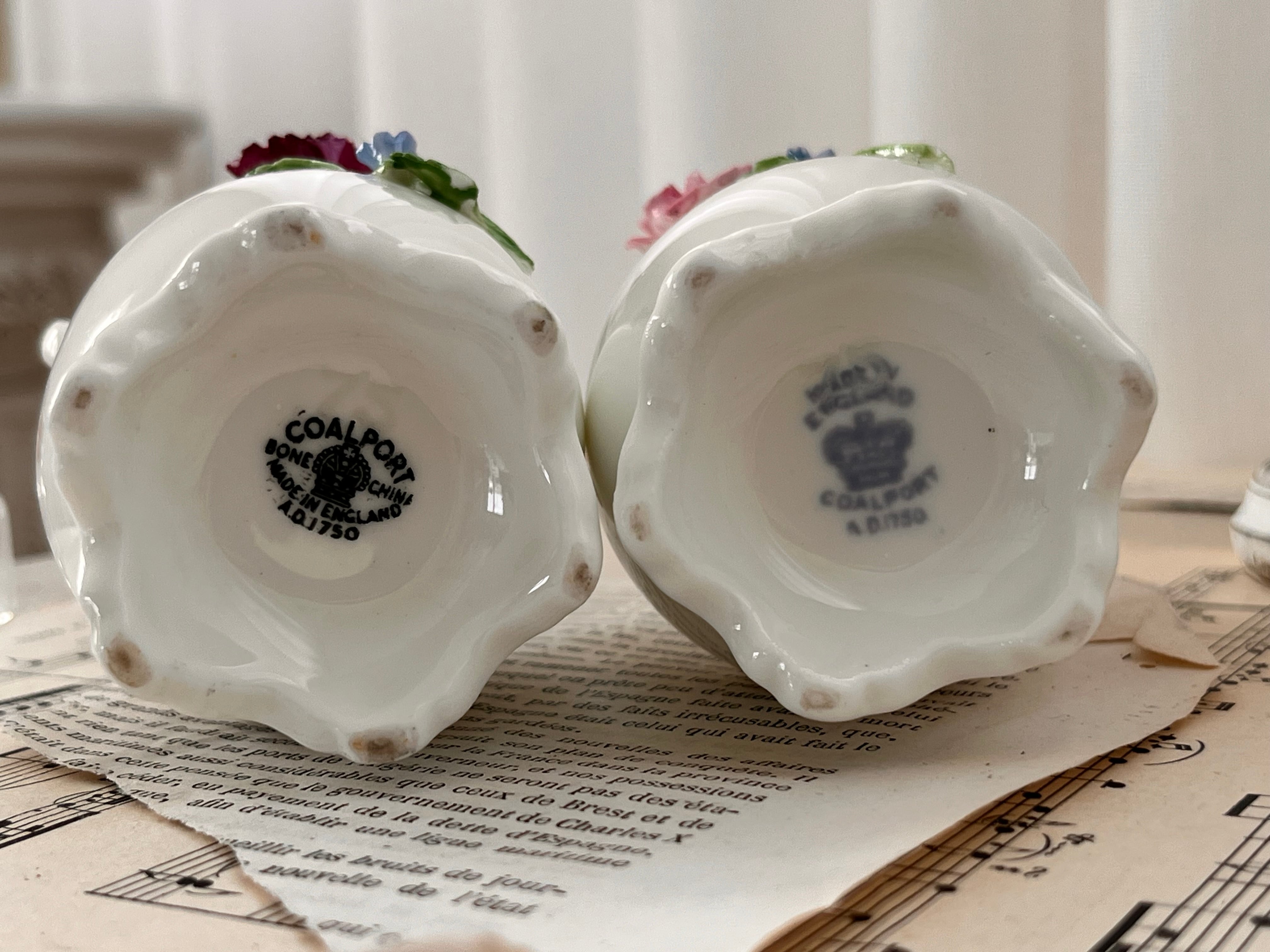 コールポートの花のモチーフが付いた一輪挿しの花瓶セットがイギリスより到着しました☆