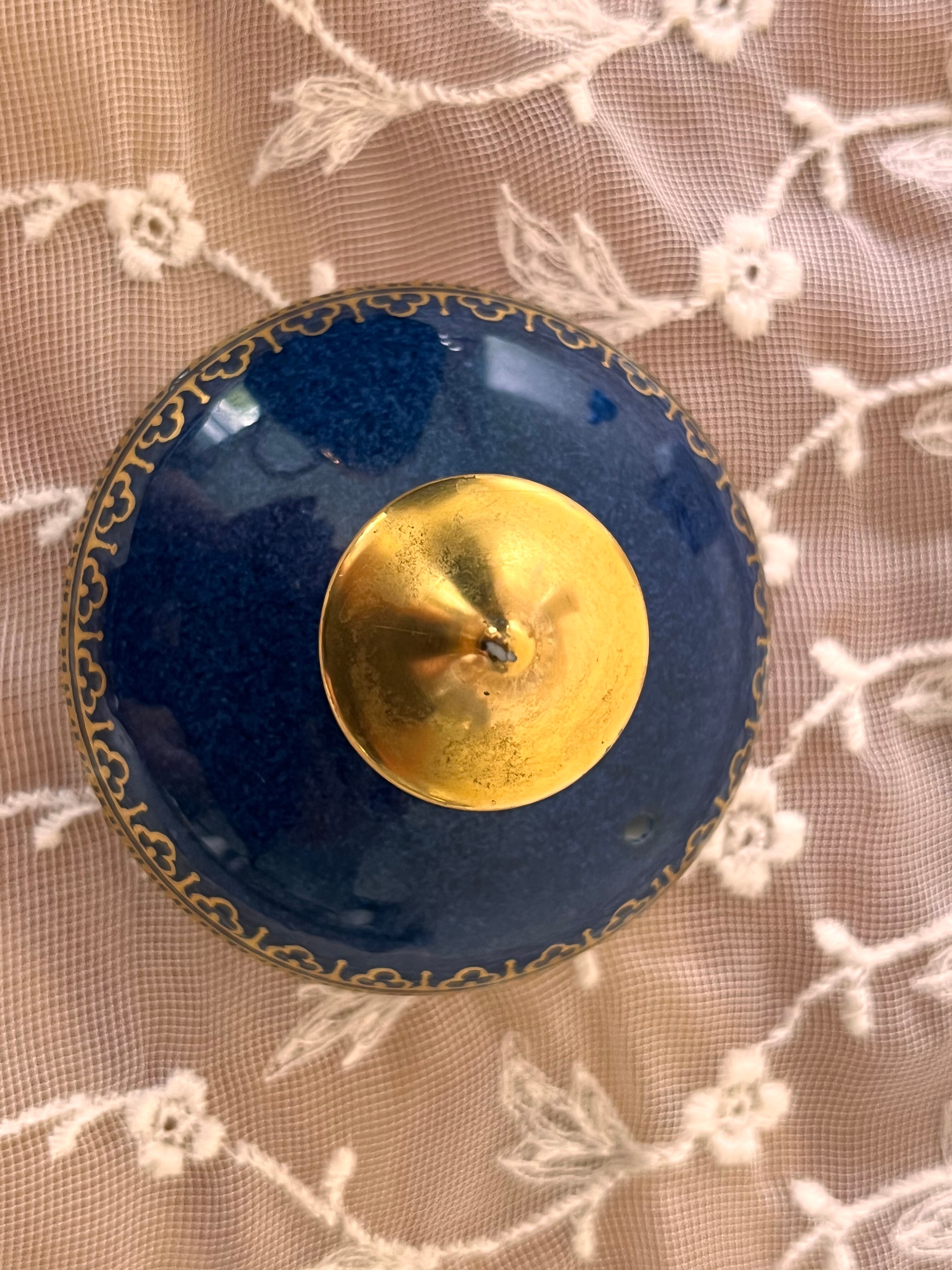 豪華な金彩にピンクと青の花のデザインがエキゾチックで