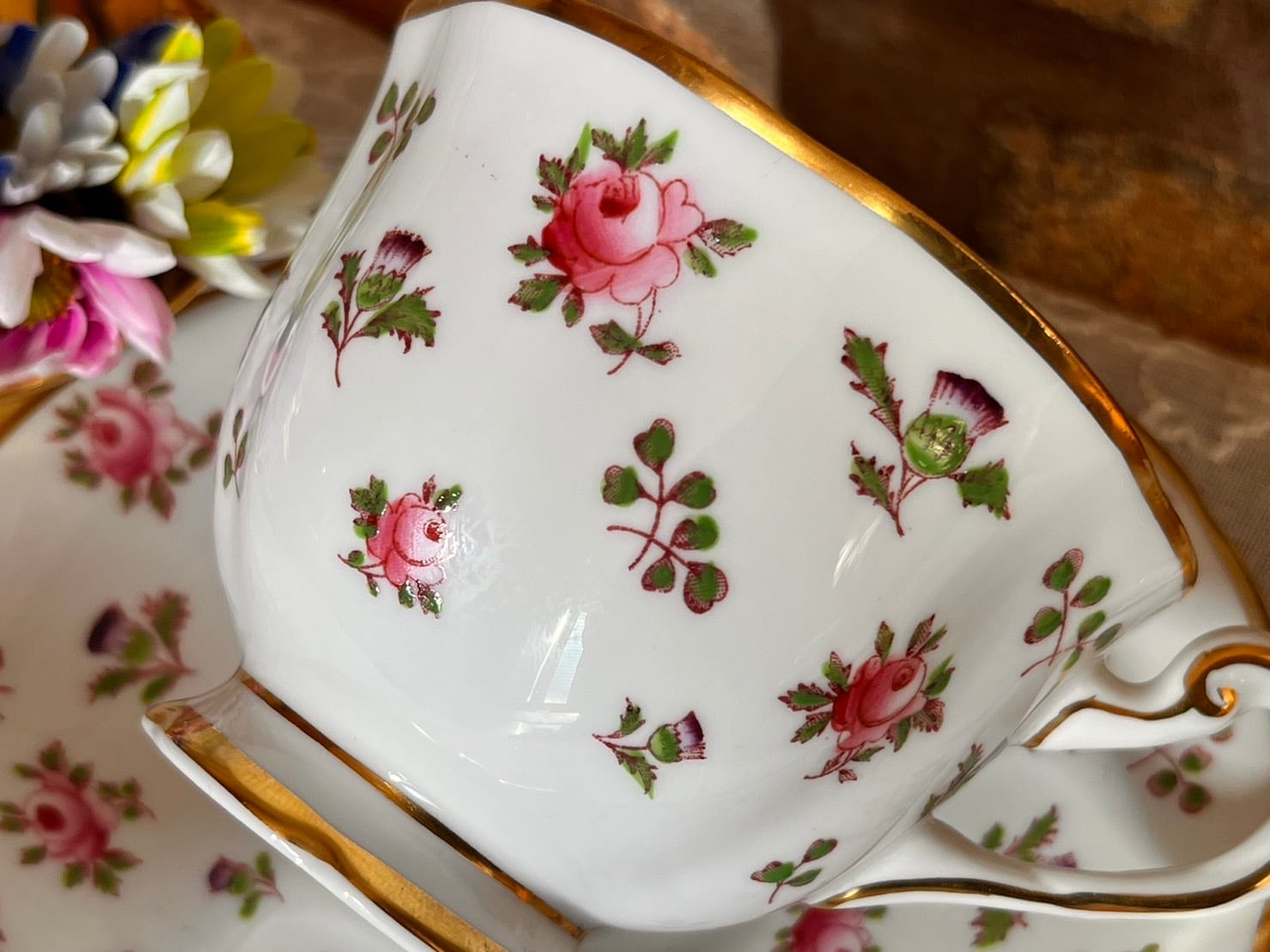 ロイヤルチェルシーのピンクの花柄のティーカップ&ソーサーが英国よりやってきてくれました☆