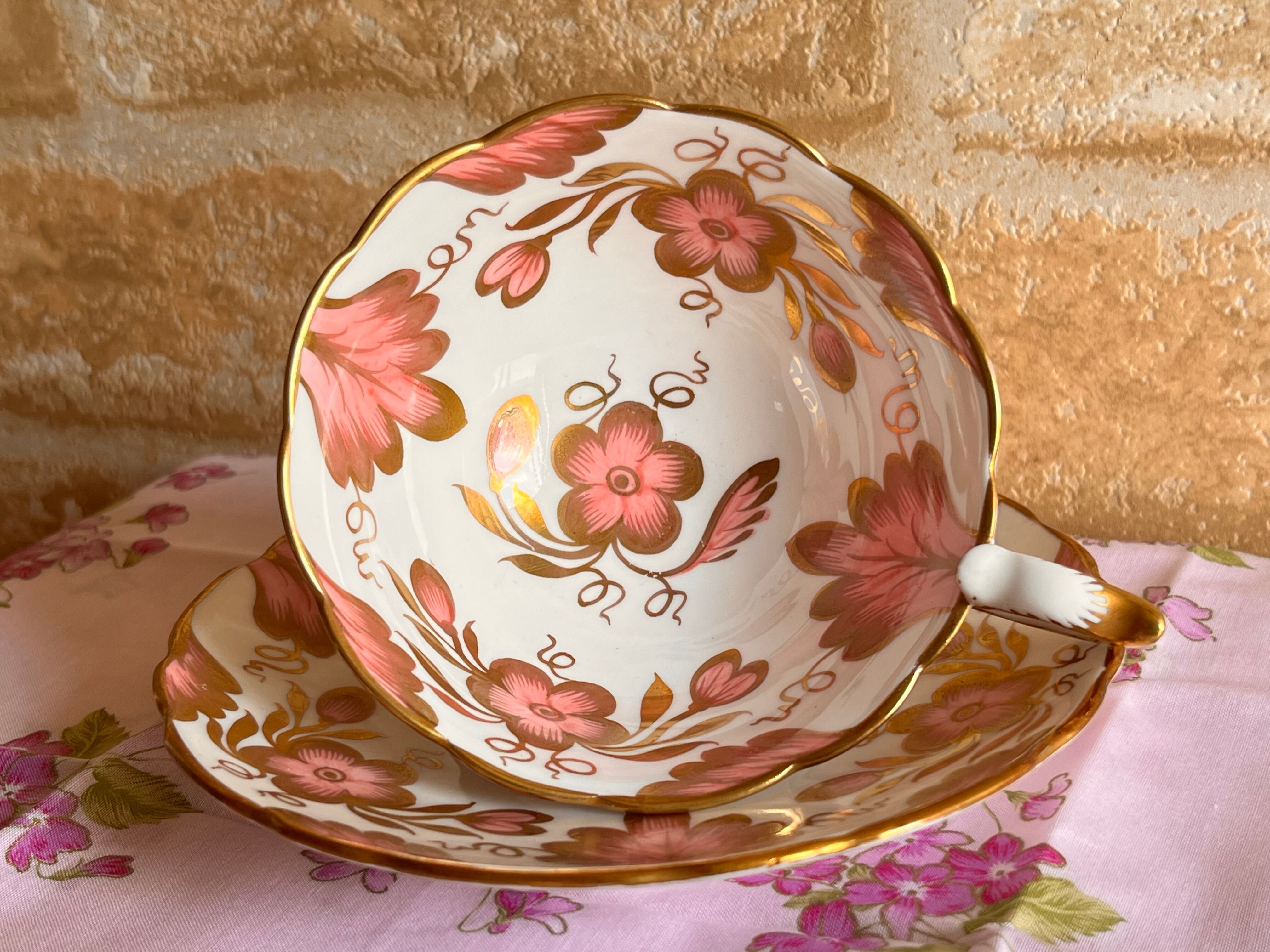 希少 英国 ロイヤルスタッフォード ピンク×ゴールド カップ&ソーサー