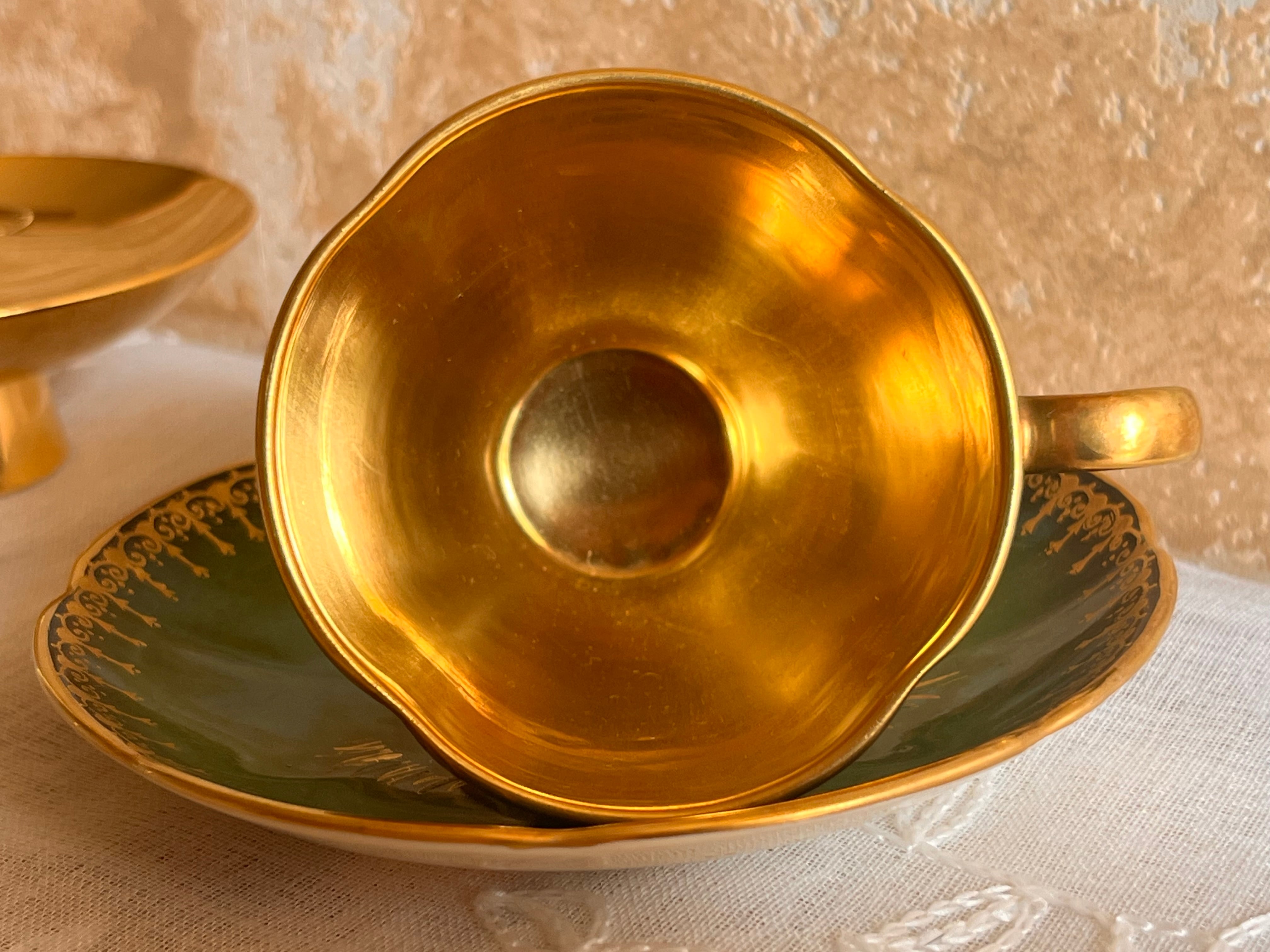 ソーサーの縁にもゴールドのフリルが装飾されているのと、ソーサー表面にもゴールドが散りばめられておりキラキラしていてとてもゴージャスです⭐︎