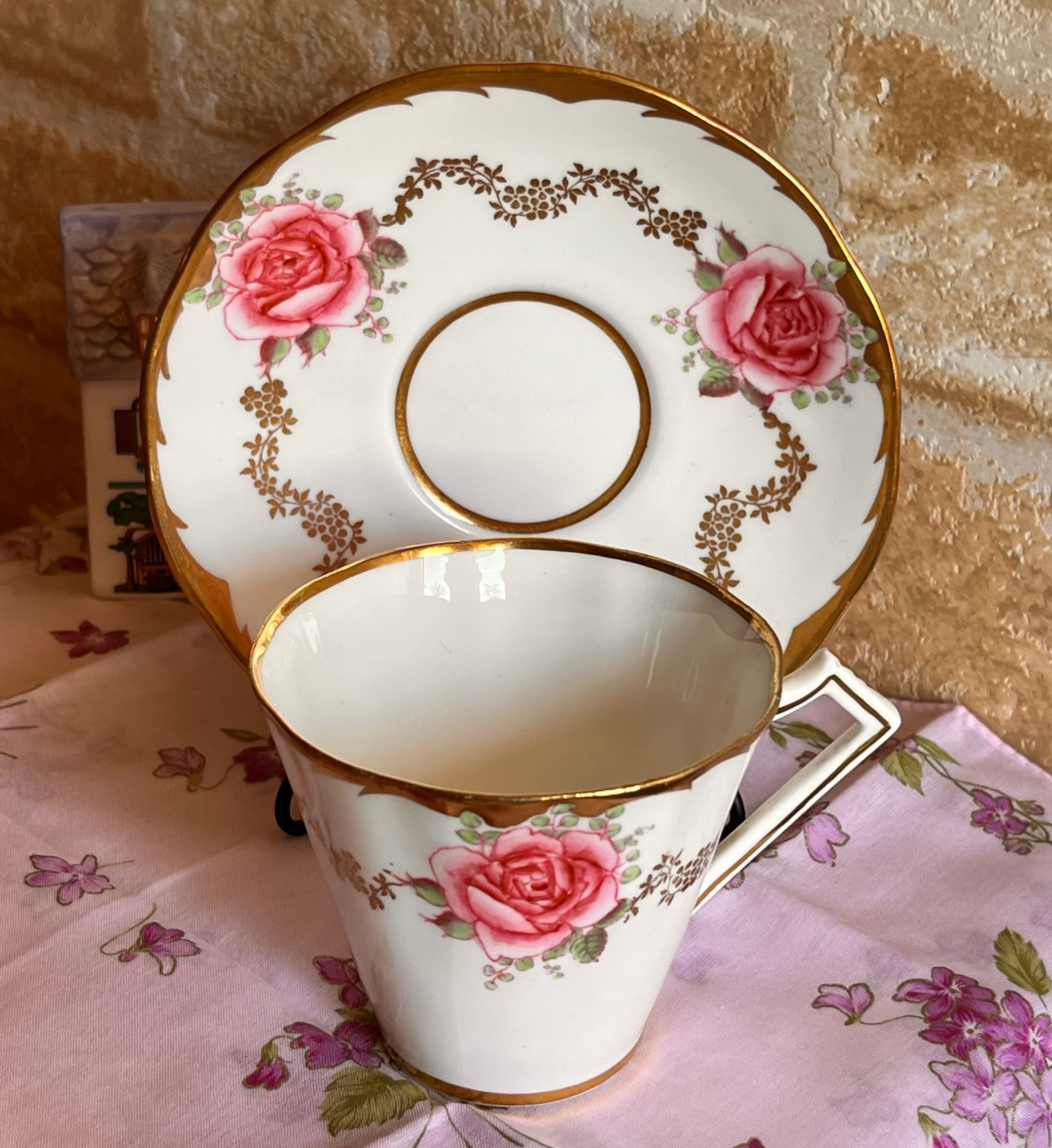 英国 ソールズベリー ピンクのバラ アールデコ カップアンドソーサー